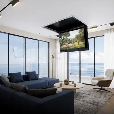 - Flap – suporte de teto motorizado. Tv fica escondida no teto;